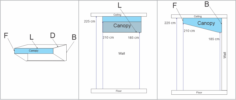 – Simple connection to spiral or rectangular ducts at the back or top of the canopy